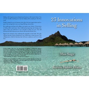 By combining coaching with selling, you inspire your clients. 23 Innovations in Selling offers much more than traditional prospecting and closing techniques. Here you will learn to see yourself as others see you. You will become the kind of person your clients will cherish all their lives.